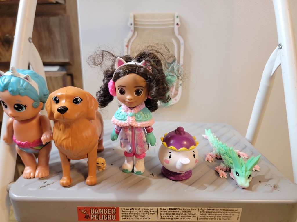 From left to right: Baby Unicorn, Mama Dog, Baby Dog, Gabby (Gabby’s Dollhouse,) Cup Of Tea (Mrs. Potts,) and Spiky Watermelon.